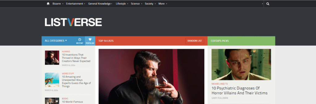Perfect for the amateur historian, this site showcases lists on world events, mythology, and historical oddities. While submissions are temporarily closed, it’s worth bookmarking.