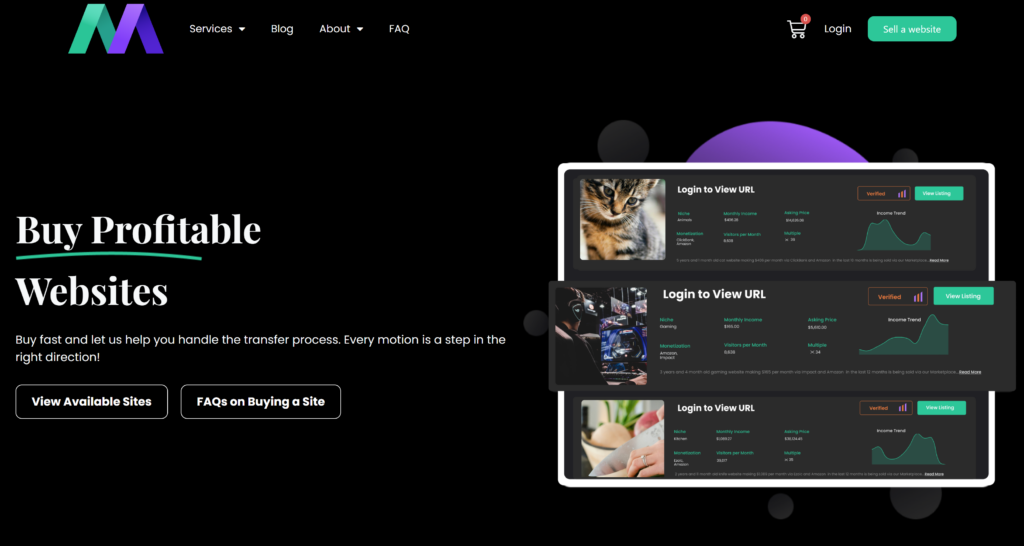 Buying a profitable website can be like buying a digital storefront that’s already making money. Platforms such as MotionInvest list websites for sale across niches, often with manageable price tags.