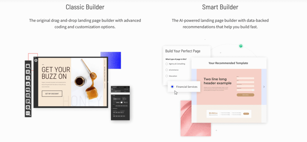 - Smart Builder & Classic Builder: Choose AI‑driven page creation or a fully custom drag‑and‑drop interface.