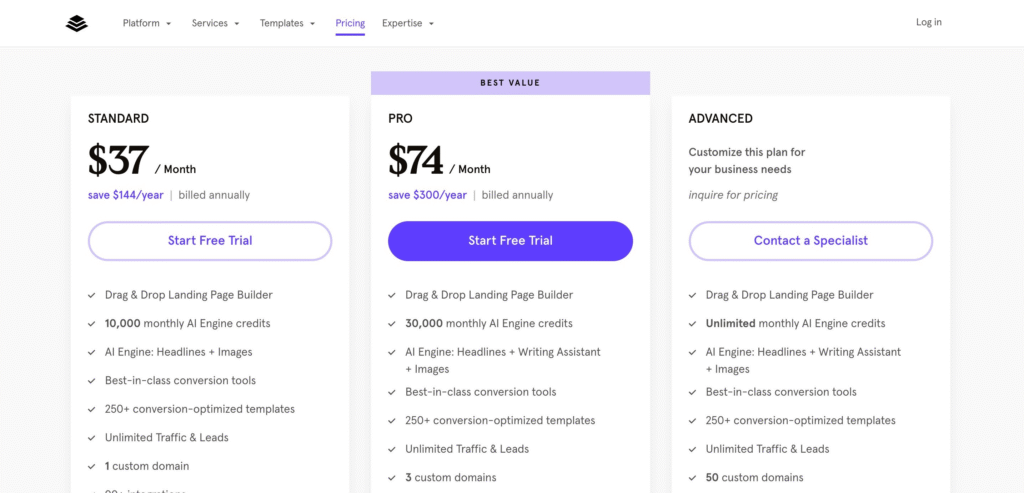 Leadpages earns praise for its simplicity and speed. Its standout features include: